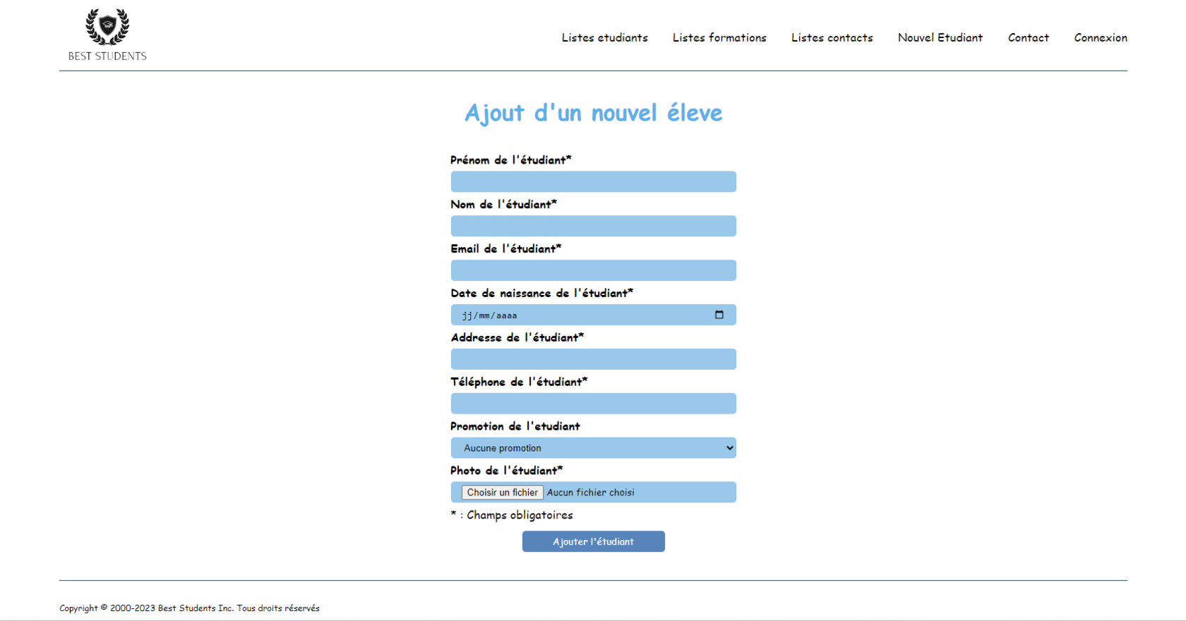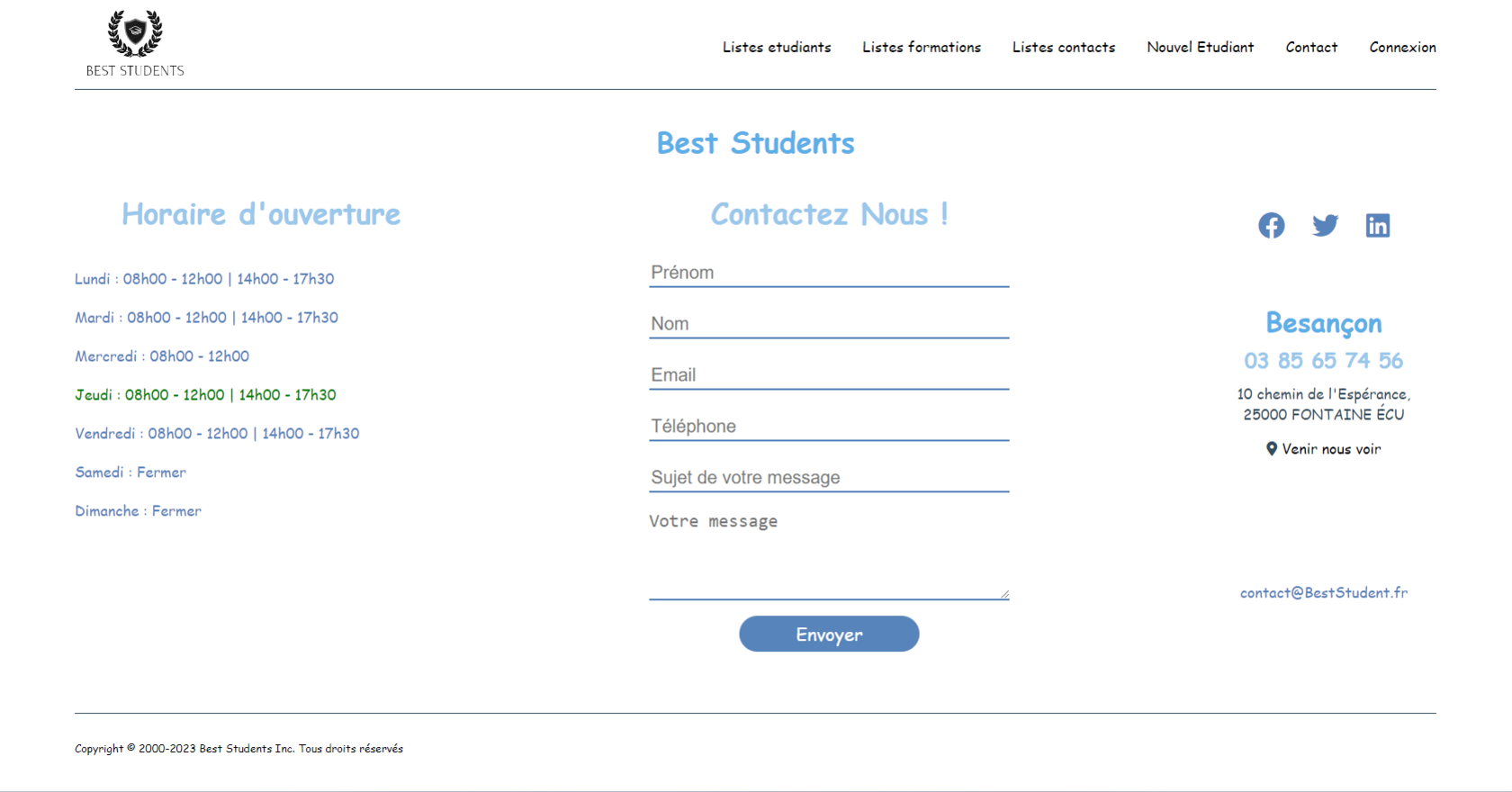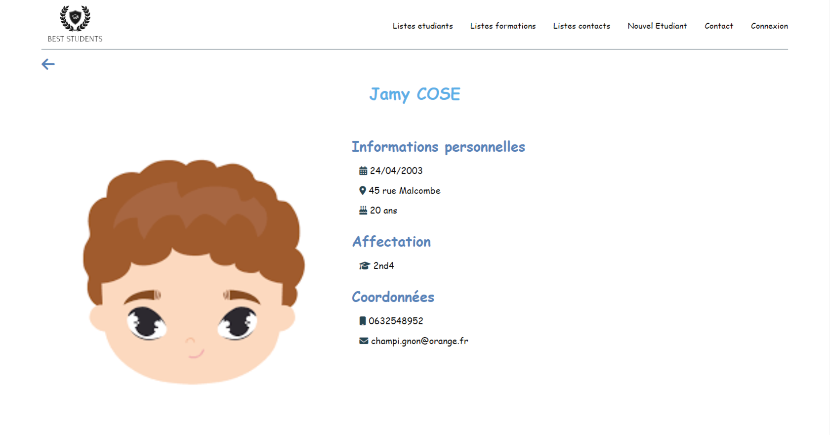 BestStudents est un projet créé au cours de ma première année de BTS.